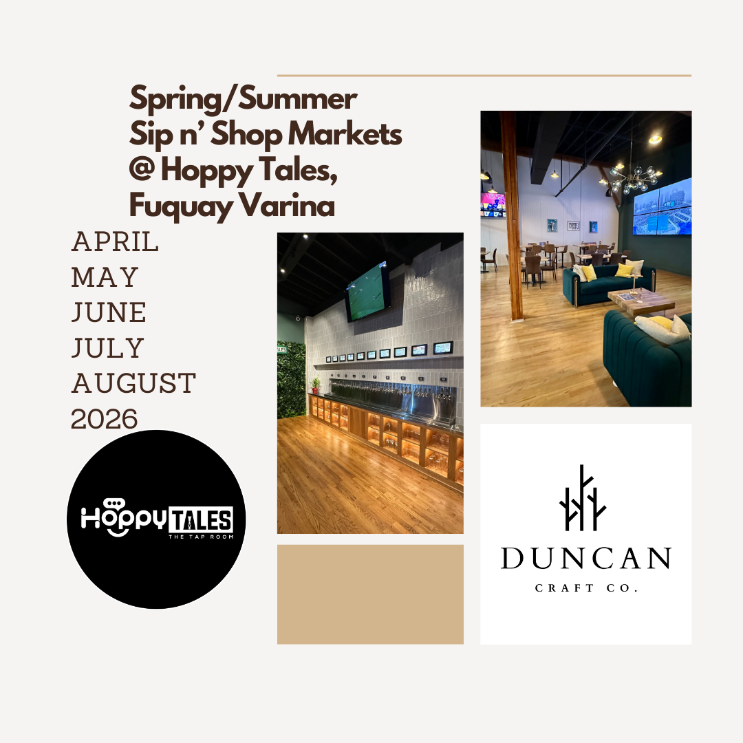 Click on the image above to apply for the Winter/Spring Sip nā Shop Markets at Hoppy Tales in Fuquay Varina. Vendors will need to bring their own table(s). The vendor fee is $40 for a 6 ft table and $50 for a 12 foot spot for each market, and is due within seven days of receiving an acceptance email.
